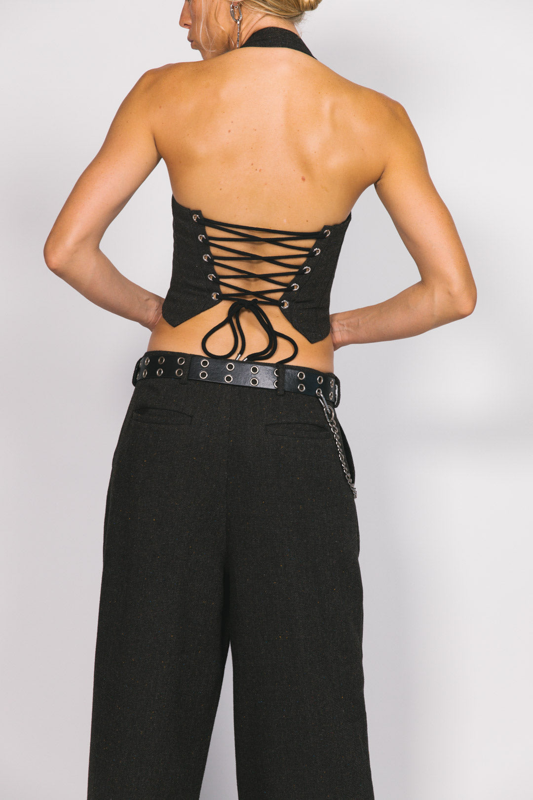 Chocolate Wool Lace Up Halter Top