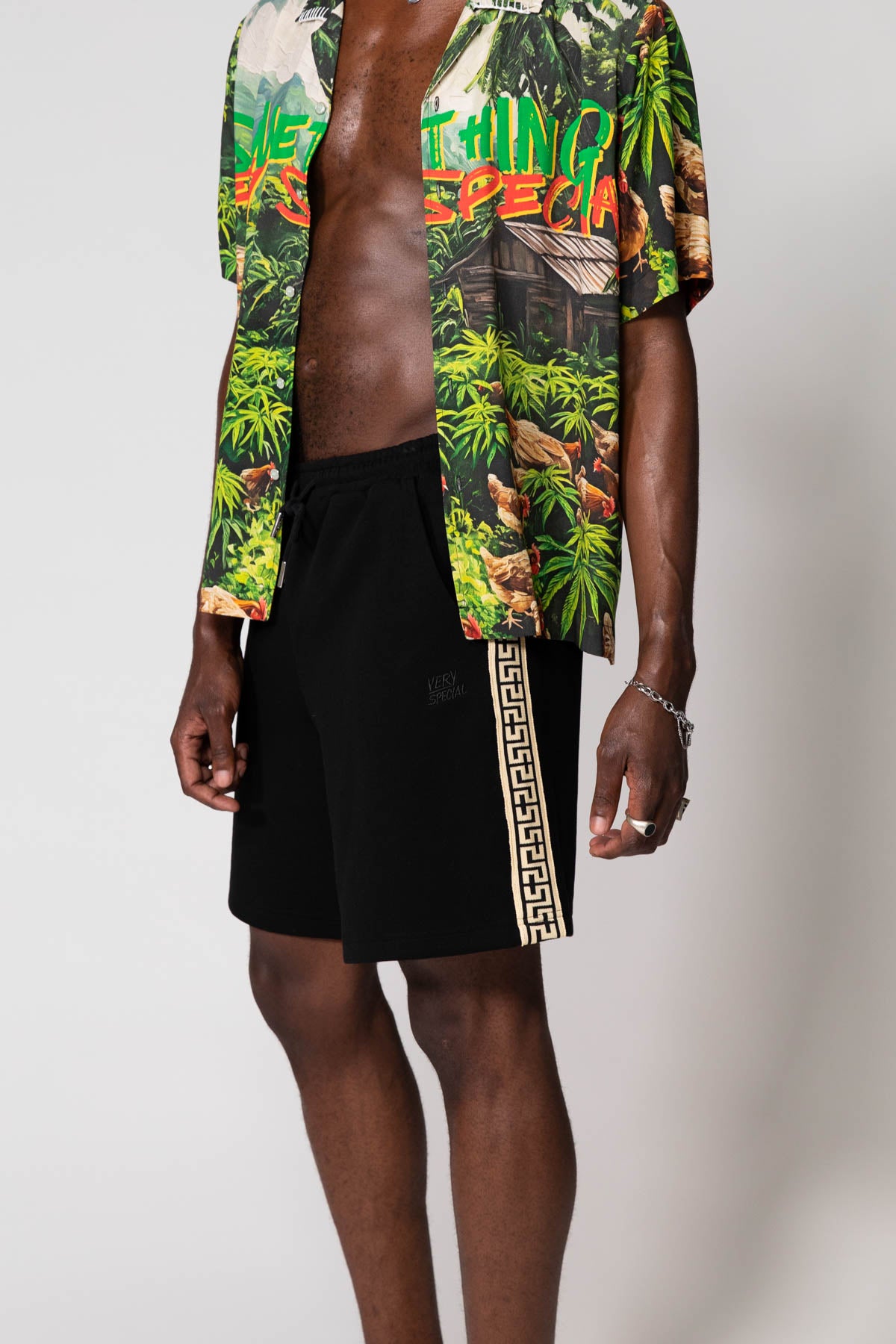 Black Geo Track Shorts