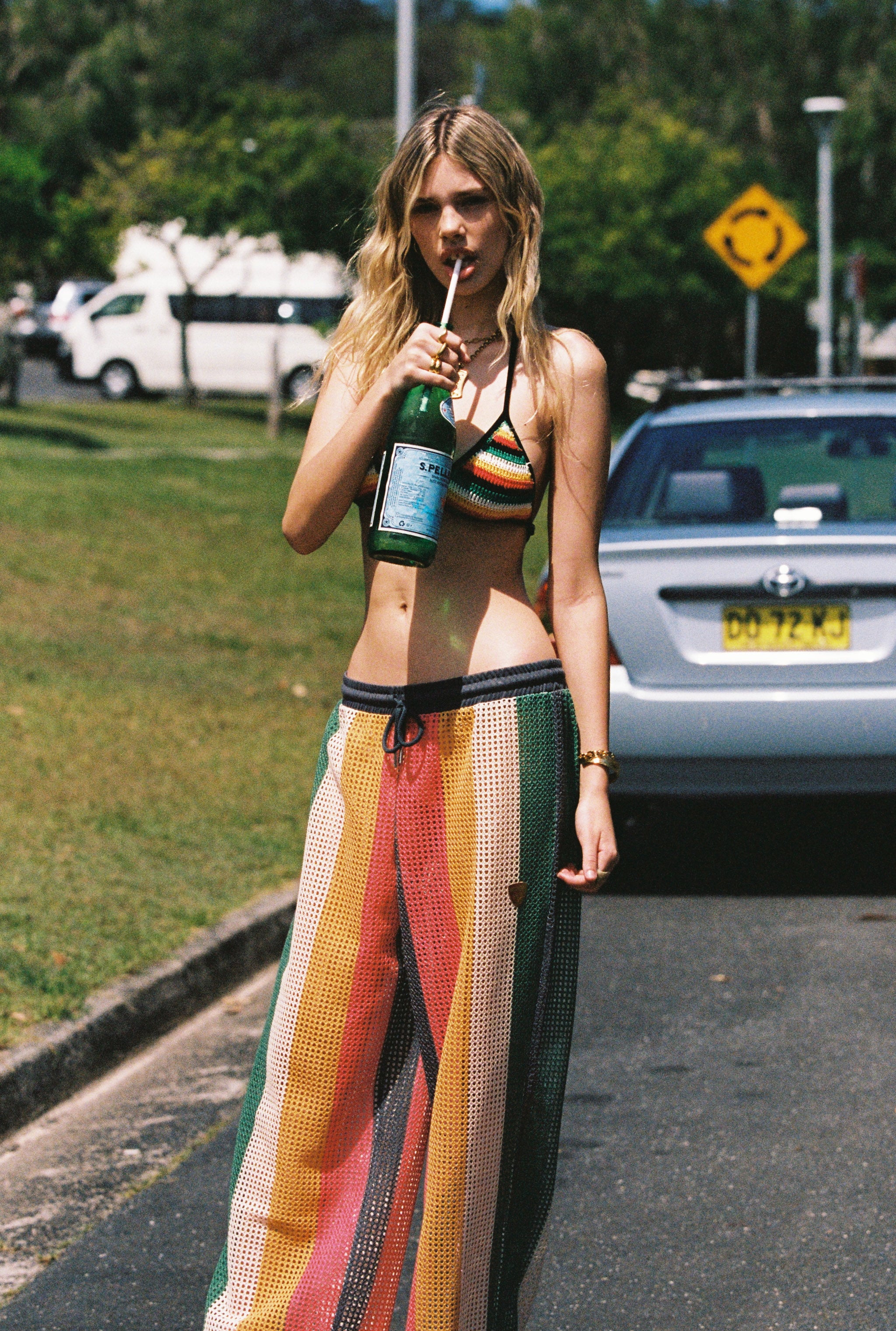 Island Stripe Net Mesh Vacay Pant